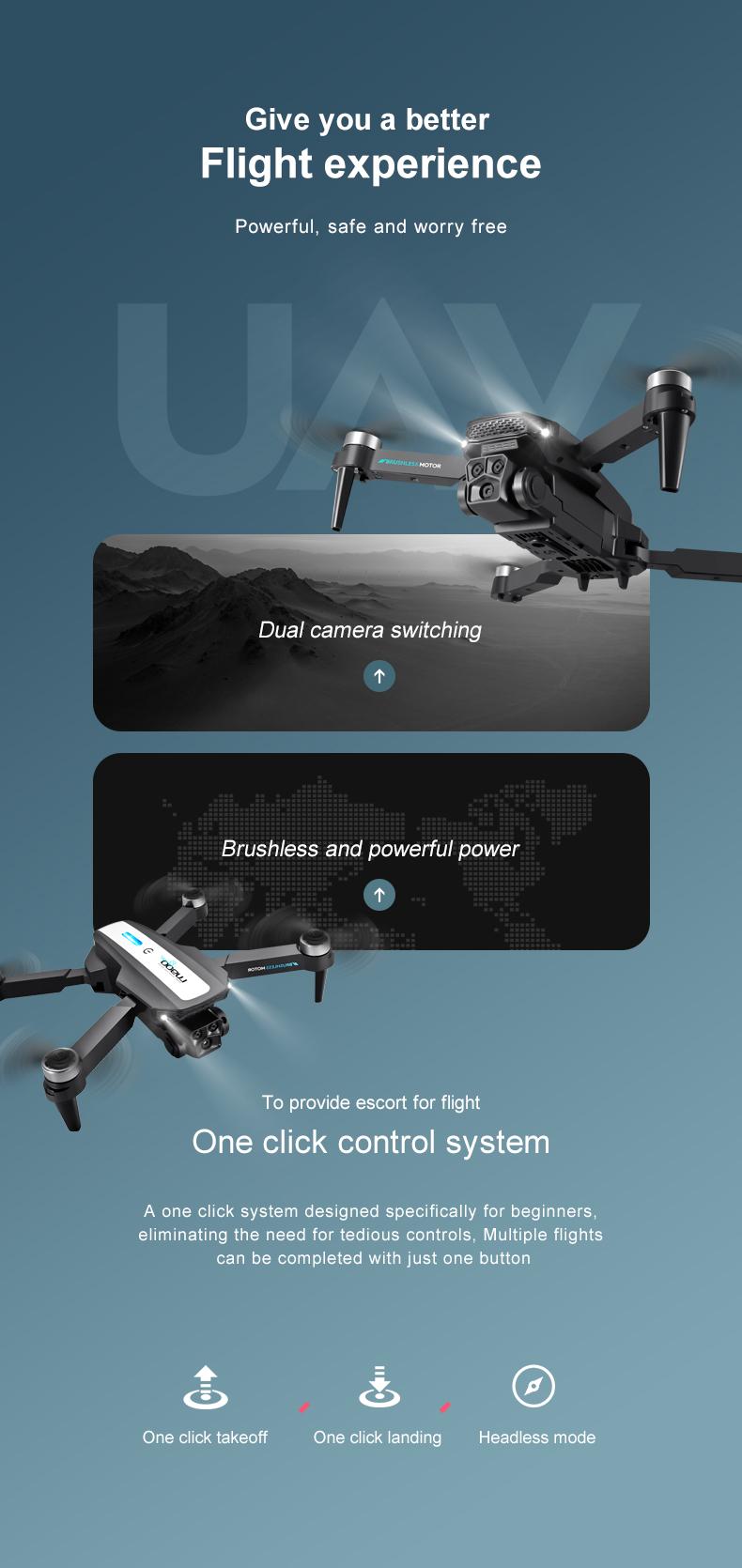 Equipped with a high-capacity battery, it can provide a long flight time, meeting the needs of users for uninterrupted exploration. There is no need for frequent charging, allowing you to enjoy the pleasure of flying to the fullest.